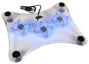 USB plug features an input so your notebook's USB port isn't tied up by the cooling fan and another device can be used Three high powered fans provide optimal cooling at 2800 rpm with 6 LED lights providing a gentle electric blue glow for an eye catching effect Ergonomic angle makes notebook use more comfortable